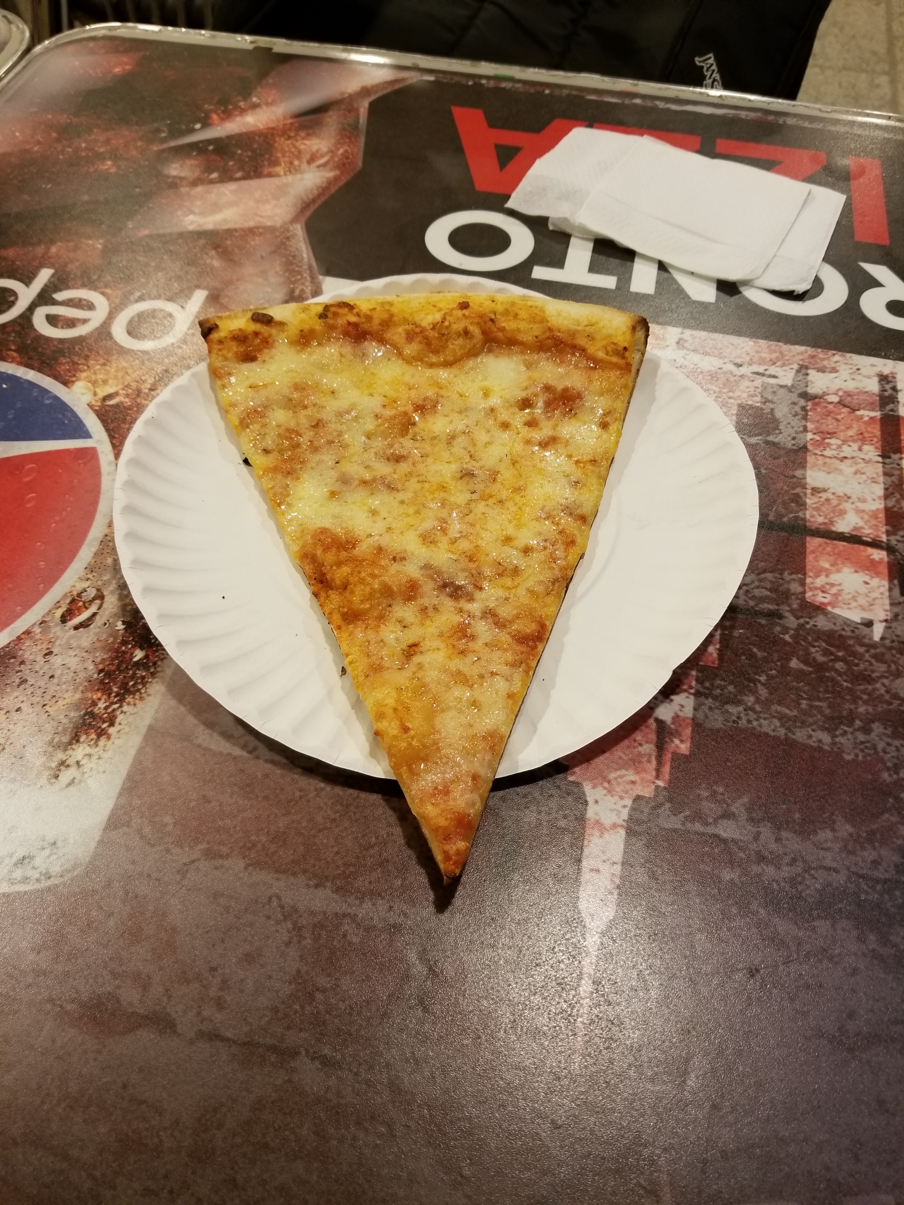 We also stick with “plain” (a.k.a. “cheese”) pizza at most locations. The plain pizza here is super satisfying and will save you money at every stop.