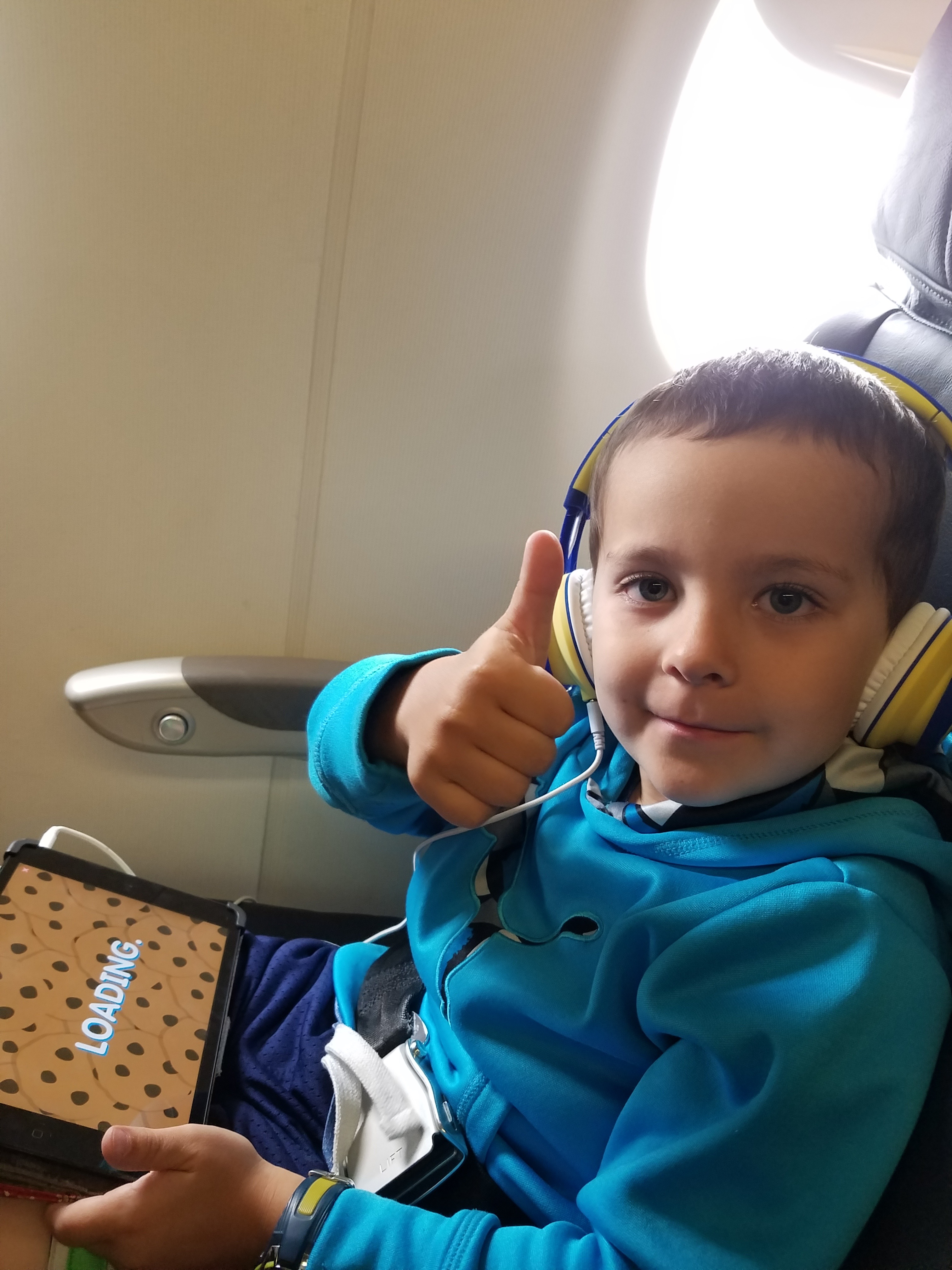 Do you know what you do when your kid vomits in the security line? When you’ve been standing in said line for half of an hour and your plane leaves in another, you just keep movin’ in the queue. (Yes, I did let an official know that there was a … mess.) We ended up boarding the plane within minutes of arriving at our gate, and when we got to our seats I had just enough time to locate a vomit bag before vomit of the day #2 made it’s arrival.